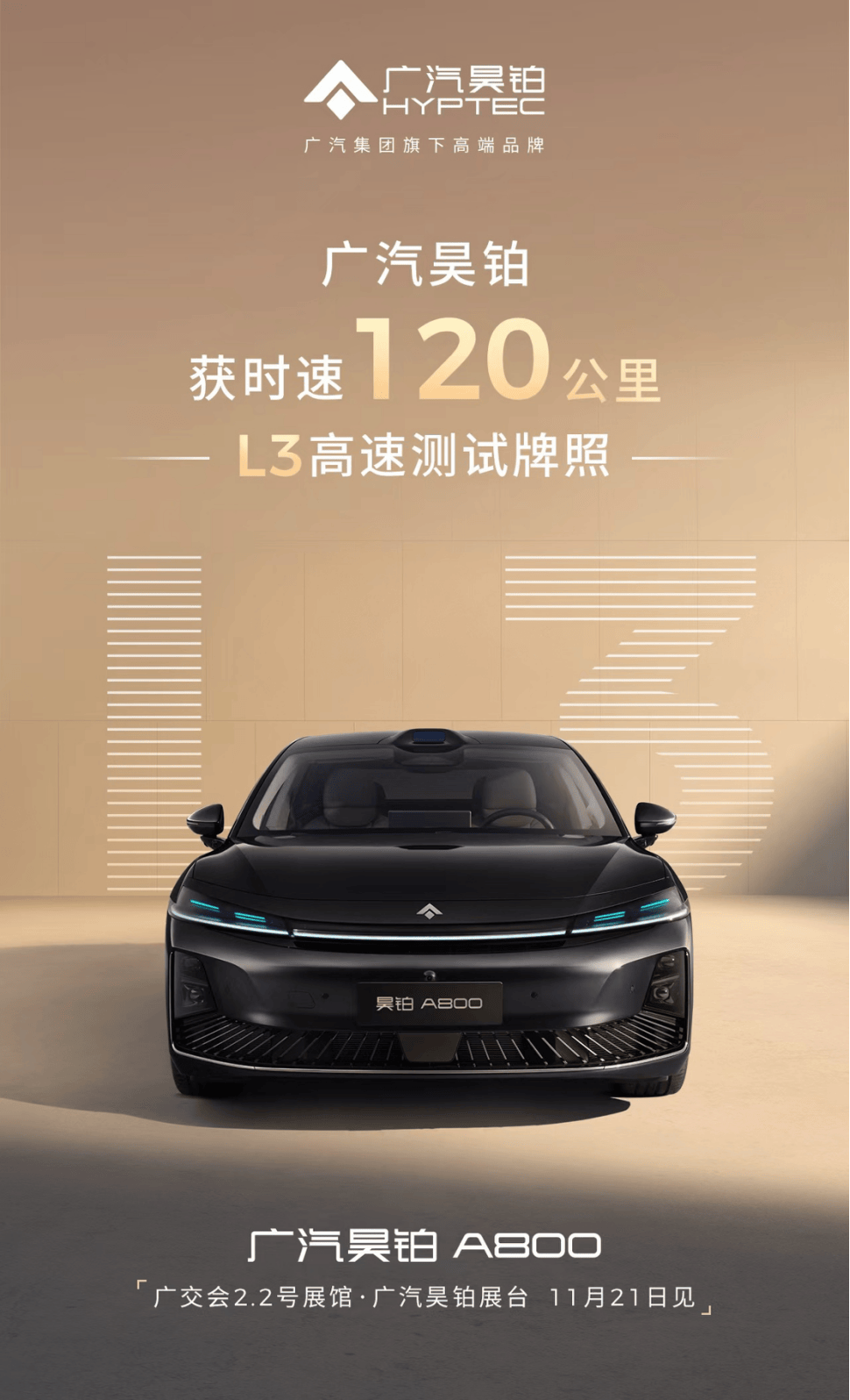 值得一提的是,11月21日,搭载L3级自动驾驶技术的广汽昊铂A800将亮相广州车展2.2馆,届时广大观众将有机会近距离感受这款车的独特魅力与先进科技。这一亮相无疑将成为车展的一大亮点,吸引众多汽车爱好者和行业人士的关注。