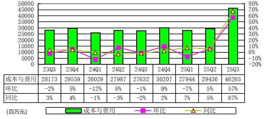 成本结构方面,该季度销售成本183亿元人民币,同比增长12%,主要因智能云业务及内容成本增加;销售及管理费用66亿元人民币,同比增长12%,源于预期信用损失及渠道支出上升;研发费用52亿元人民币,同比下降3%。长期资产减值162亿元人民币,主要涉及核心资产组减值。