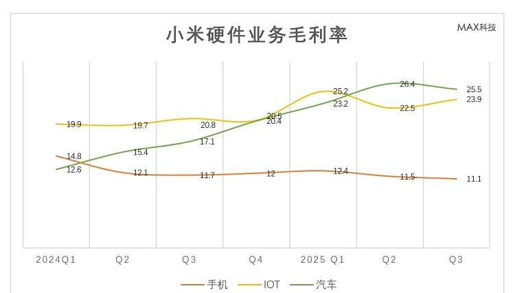 深入剖析小米汽车的三季度财报,不难发现两大亮点。首先,小米汽车的毛利率实现了显著提升,从去年的17.1%跃升至当前的25.5%。这一数据不仅远超小米智能手机业务11.1%的毛利率,也略高于家电消费产品23.9%的毛利率。考虑到汽车业务的销售规模远非手机和家电可比,这一毛利率的提升显得尤为珍贵。