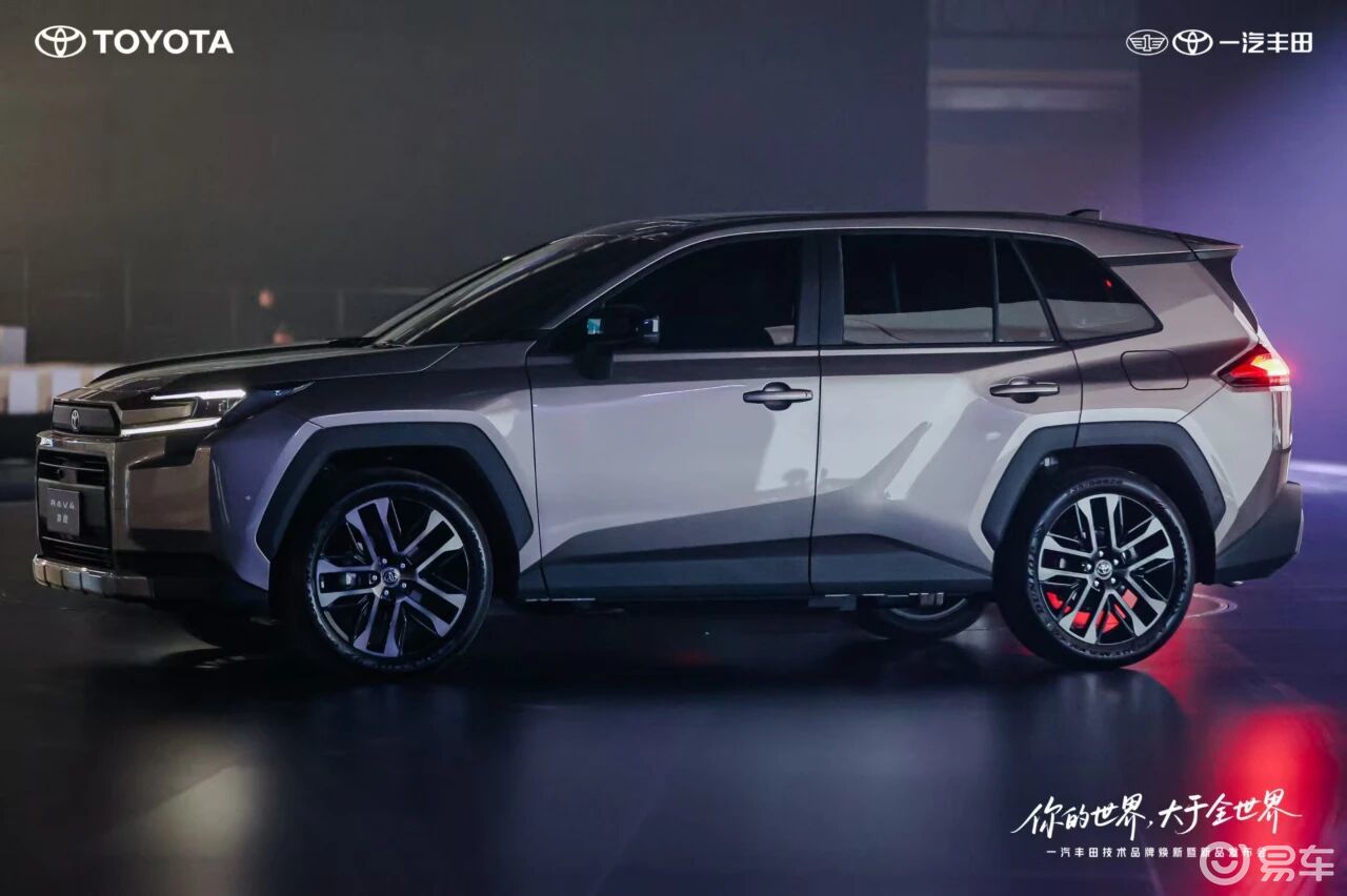 此次发布的三款车型——全新智混卡罗拉、bZ3智享家与第六代荣放,覆盖了从城市通勤到户外探险的多元需求。全新智混卡罗拉以“锤头鲨”前脸与贯穿式熏黑尾灯塑造运动感,4710mm车长与2750mm轴距的组合,使其后排空间直逼B级车标准。第六代荣放则通过C字LED大灯、黑色轮眉与银色护板的搭配,强化硬派越野气质,20英寸轮毂选装方案进一步提升了视觉冲击力。bZ3智享家则以环抱式座舱与双色车身设计,将纯电车型的科技感与流畅线条完美融合。