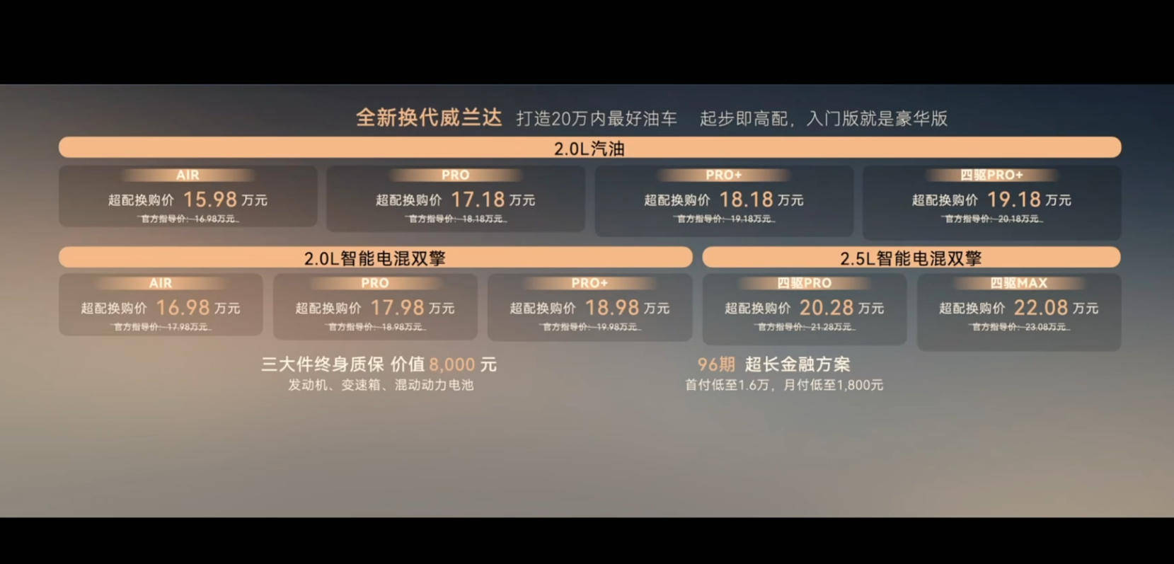 动力系统方面,新车提供三种动力选择:2.0L燃油版、2.0L混动版以及2.5L混动版。其中,2.0L燃油版发动机最大功率为126kW;2.0L混动版发动机最大功率为112kW;2.5L混动版发动机最大功率为136kW。多样化的动力配置满足了不同消费者的需求,兼顾了性能与燃油经济性。