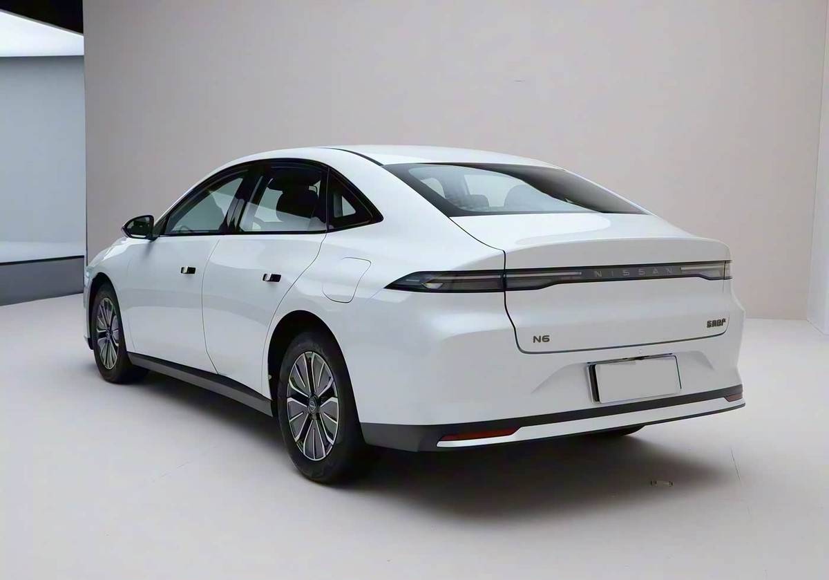 外观设计方面,N6采用简洁流畅的车身线条。侧面轮廓通过若隐若现的上腰线勾勒出舒展姿态,黑色侧窗边框与平滑车顶形成视觉延伸效果,搭配五辐花瓣式轮毂增添运动气息。车尾设计延续简约风格,贯穿式尾灯组与微微上翘的扰流板形成呼应,整体造型既保持了中型车的稳重感,又通过细节处理展现出年轻化特质。