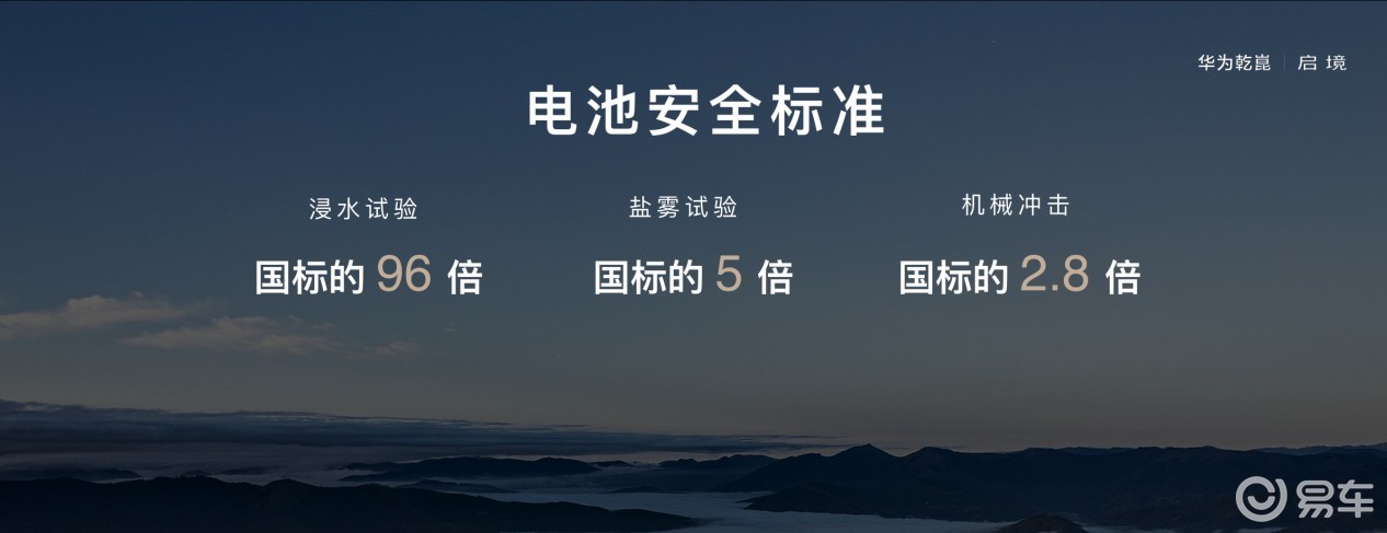 安全是启境“不做妥协”的另一大亮点。新车依托广汽200万+台新能源车的品质积累、宁德时代尖端电芯技术,以及华为严苛的安全标准,构建了从电芯到整车的全方位防护体系。华为电池团队从设计、热管理、结构、匹配与BMS硬件五个维度,制定了144项安全因子与86大项电池包DV测试标准。例如,其浸水试验强度达到国标的96倍,盐雾试验为国标的5倍,机械冲击测试为国标的2.8倍。这种“从基因里生长出来的安全”,让启境成为用户无死角守护的移动堡垒。