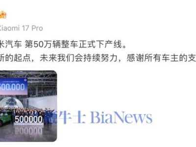 位于北京经济技术开发区的小米汽车超级工厂内,第50万辆小米汽车正式完成下线。这一里程碑事件标志着小米汽车在新能源赛道上实现了关键突破——从首款车型SU7发布到达成50万辆产能,仅用时602天,刷新全球新能源车企最快纪录。此前,该纪录由特斯拉保持,其达成50万辆量产耗时约24个月。