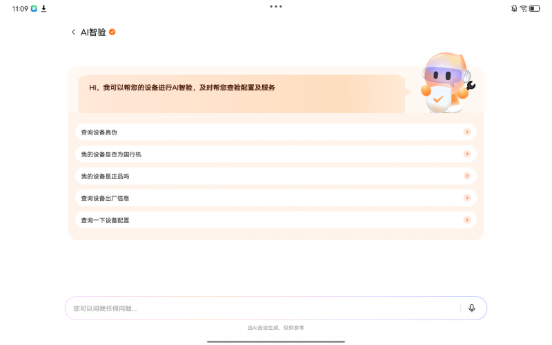 输入验机相关问题,AI智验将会开始智能检测