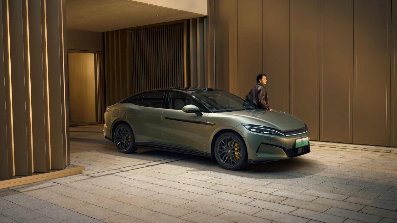 设计美学层面,汉L以Loong Face龙颜美学为基底,推出橄榄绿与西子蓝两款创新车色。橄榄绿车漆通过纳米级色浆与超细铝粉配比,在光照下呈现绿金渐变效果;西子蓝则采用珠光包覆技术,随光线强度变化呈现金属白与碧蓝色切换。运动版车型配备悬浮黑顶、黑化窗框及哑光轮毂等20英寸运动套件,内饰采用戟灰色运动座椅搭配虎皮黄缝线,营造强烈战斗氛围。