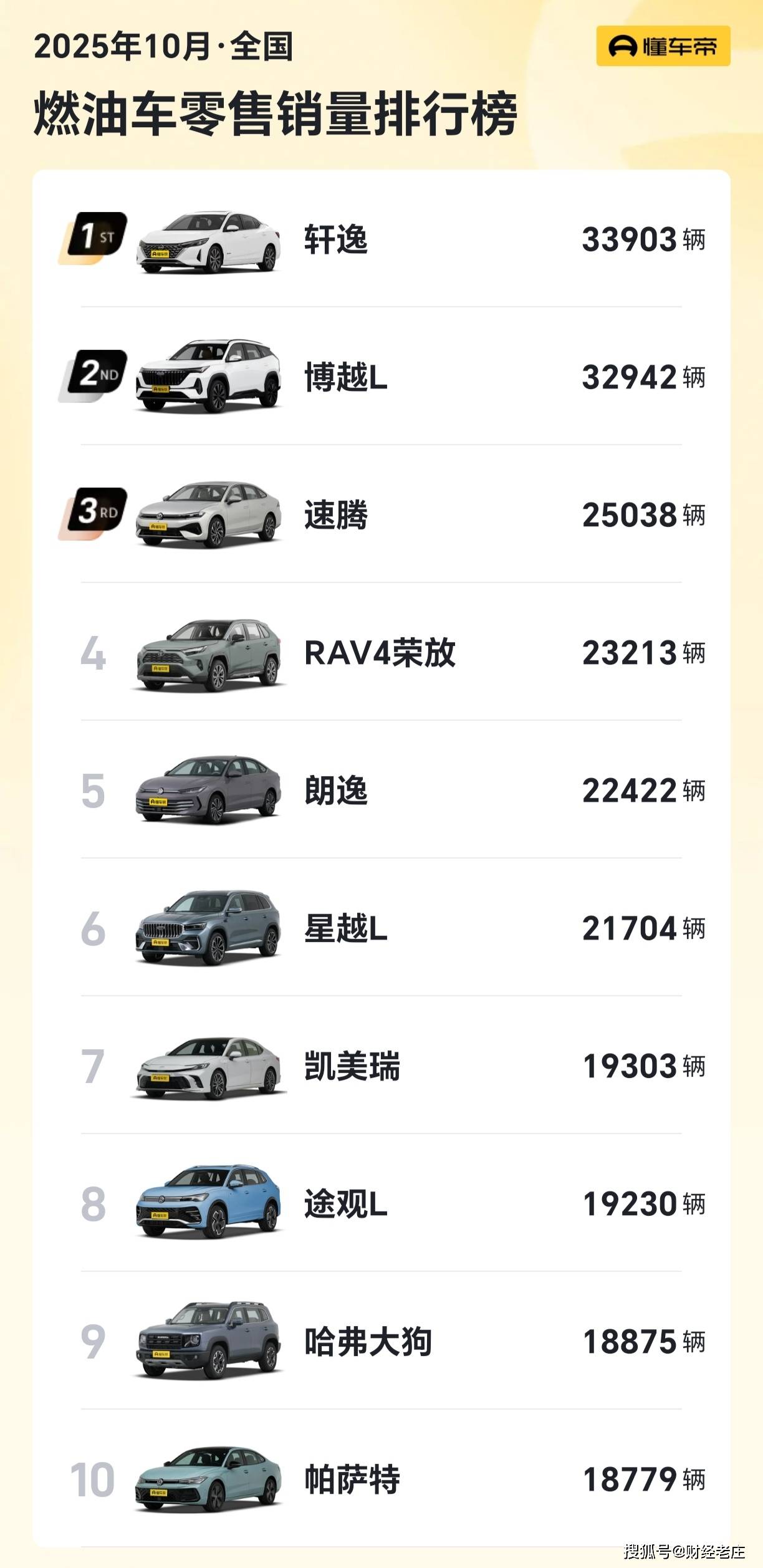 在最新公布的燃油车销量榜单中,日产轩逸凭借出色表现登顶冠军宝座,成为本月车市焦点。与此同时,自主品牌有3款车型入围前十,合资品牌则占据7个席位,其中长城哈弗大狗以第9名的成绩引发关注。