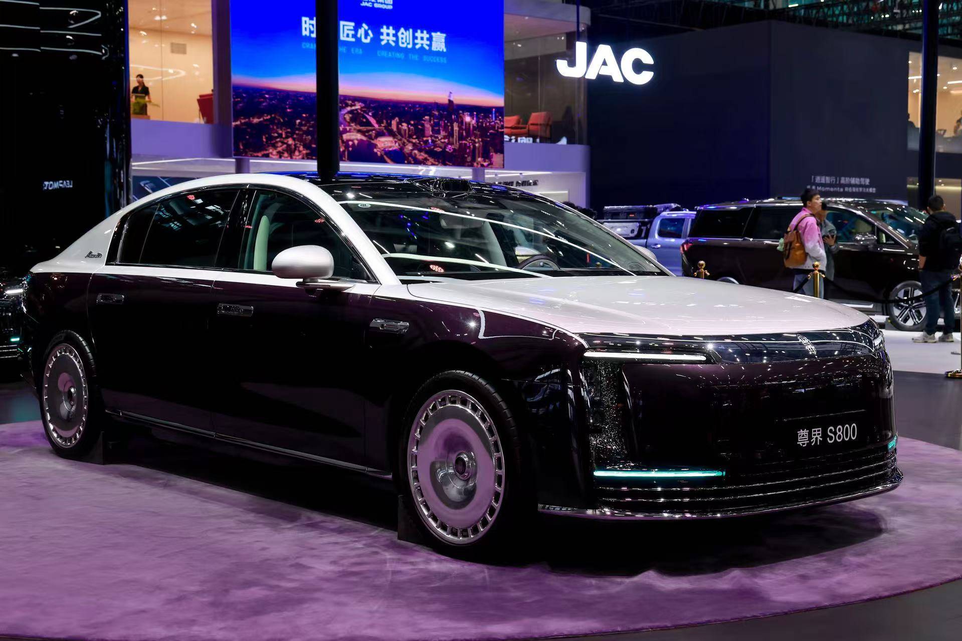 江淮汽车与华为携手打造的尊界S800也在车展上同台展出。华为常务董事、产品投资委员会主任、终端BG董事长余承东在车展开幕前一天透露,尊界S800上市175天,大定突破18000辆。目前每月交付量约2000辆,预计本月会努力达到3000辆,下个月交付量肯定会超过3000辆,向3000 - 4000辆的目标努力,月交付量呈稳定爬升态势,将缩短用户的等车时间。余承东还表示,尊界S800创造了中国百万级豪车的新历史记录,目前占到了百万级豪车月销量的10%。尊界自上市以来,订单持续性很强,随着江淮汽车优化供应链及工厂产能,销量有望进一步攀升。华创证券在研报中指出,看好尊界产品竞争力以及订单持续性,预计尊界S800稳态月销2000辆。而且,尊界作为百万级豪车,盈利能力更强。华创证券认为,保时捷净利率在9% - 13%,尊界受益于成本、关税、消费税优势,净利率有望大幅高于保时捷。豪华车市场竞争格局良好,市场集中度高且自主品牌少,鸿蒙智行与江淮赋予尊界科技、品牌、品质的稀缺性,江淮有望成为极稀缺的豪华车标的。