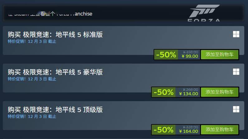 《极限竞速:地平线 5》在Steam平台开启黑色星期五特卖活动,为玩家带来超值优惠。此次促销力度空前,标准版售价降至99元,豪华版仅需134元,顶级版也以164元的价格出售,活动将持续至12月3日。