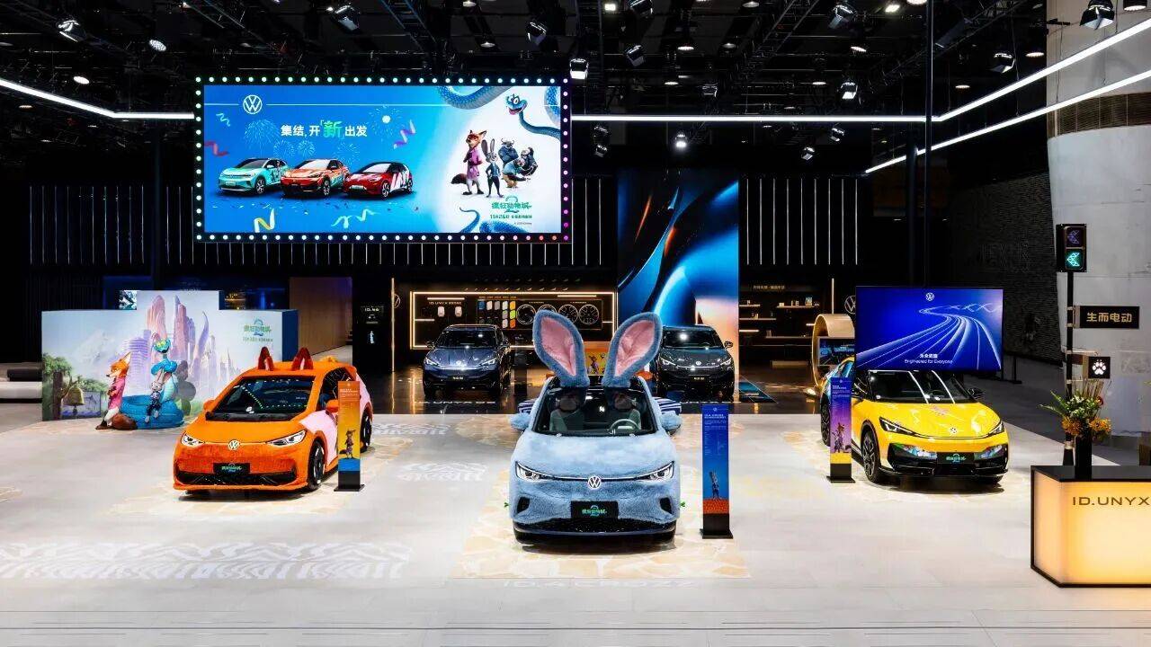展台另一侧,大众汽车与迪士尼《疯狂动物城2》的跨界合作吸引众多家庭观众驻足。ID.3、ID.4 CROZZ及与众06三款特别版车型化身动画角色,其中ID.3 GTX尼克定制款以毛茸茸的外观和俏皮细节还原电影中的经典形象,成为展区内的“人气担当”。此次联动是该电影全球宣传计划的一部分,大众汽车率先在中国启动专属活动,通过沉浸式体验空间传递品牌活力。