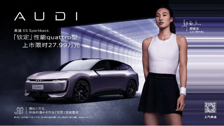 车展现场,上汽奥迪正式宣布奥迪 E5 Sportback 钦定性能quattro型上市,这款车型融合了AUDI品牌代言人郑钦文的个性主张与冠军精神,限时臻享价为27.99万元。用户只需在先锋quattro型价格基础上额外支付一万元,即可享受价值近五万元的顶级配置组合,涵盖极致可靠的驾驭体验与舒适豪华的座舱享受。品牌还为下单用户提供价值5,000元的奥金商城积分或AUDI原装充电墙盒权益,进一步提升了购车的吸引力。
