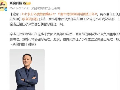 公开资料显示,徐洁云并非首次担任该职务。他此前曾主导小米公关工作,目前同时兼任集团董事长特别助理及战略市场部副总经理。根据内部文件披露,徐洁云将直接向集团副总裁、CMO许斐汇报,形成"战略-传播"双线管理架构。这种安排被解读为小米加强品牌与市场协同的重要举措。