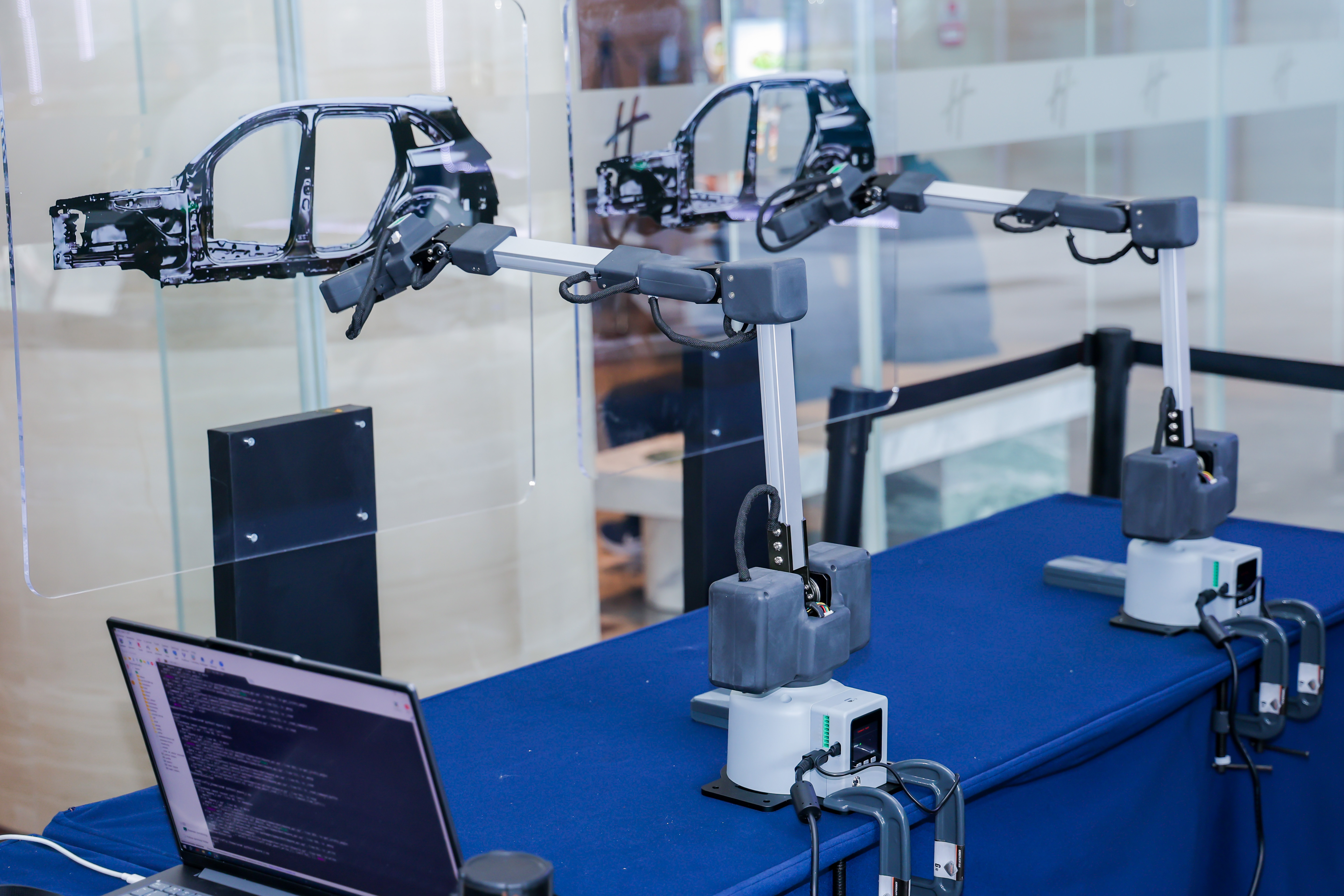 在展台现场,基于星闪无线化方式同步控制多台机械臂同步进行点焊作业的动态演示,其同步精度可达30ns级,充分满足智能制造中对多设备高精度协同的严苛要求,为产线的高效与安全运行提供了切实保障。该能力得益于星闪SLB系统基于同步系统设计的底层架构,通过集中式同步信息块与集中调度机制,实现了控制信息精确同步收发,高度契合有高可靠、高同步、高安全要求的工业场景。
