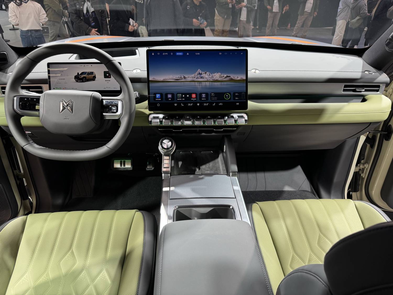 进入车内,猛士M817 Hero版的内饰风格延续了硬派越野的粗犷,但在配置上却尽显豪华与科技感。大面积皮质材料包覆的中控台,搭配菱形缝线纹路,触感细腻,档次感十足。物理按键的保留是一大亮点,大尺寸按键搭配清晰标识,让驾驶者在越野时无需低头就能盲操空调、四驱模式等核心功能,实用性极佳。