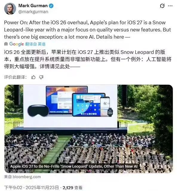 据知名科技记者马克・古尔曼在其最新一期Power On时事通讯中透露,苹果公司正为明年系统更新制定重要战略,核心方向聚焦于系统稳定性与AI能力强化。此次升级将覆盖iOS 27及macOS 27等主要操作系统,旨在通过底层性能优化解决用户长期反馈的痛点问题,同时为未来硬件创新铺路。