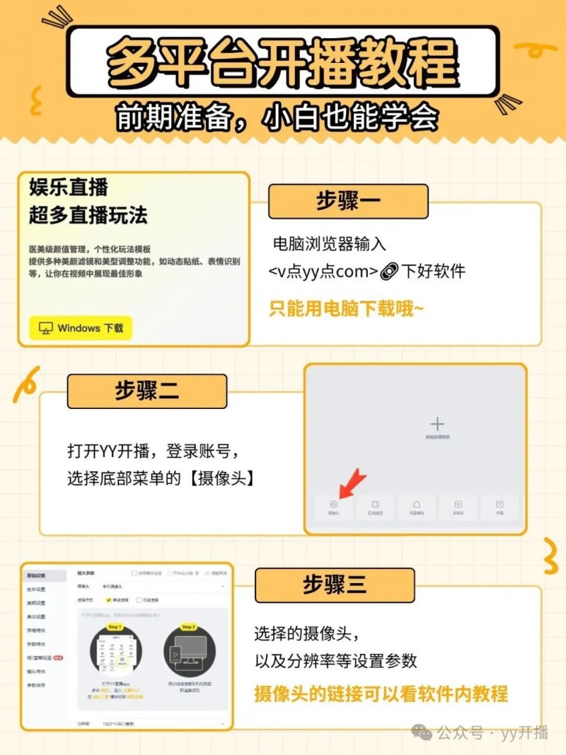 无论是希望快速提升人气的新人主播,还是寻求多平台曝光的个人博主与商家,乃至追求便捷操作、期待“轻松开播”的用户,都不妨体验YY开播。它不同于传统直播工具的复杂与冰冷,更像一位随时陪伴的智能直播搭档,从多平台同步推流、智能美颜优化,到场景化功能设置,全方位覆盖各类直播需求,让每一次开播都更简单、更高效。