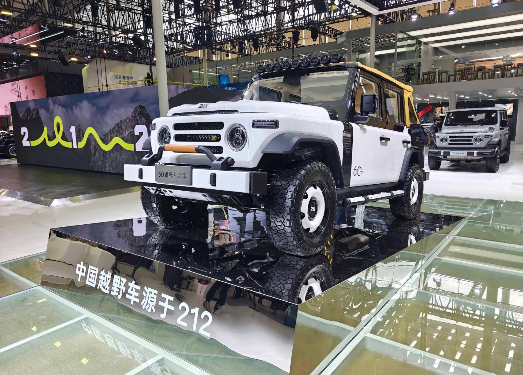 212 T01 60周年纪念版通过双拼配色和纪念标识彰显特殊身份,新车长宽高分别为4705/1895/1936mm,轴距达2860mm。外观延续圆形大灯、侧开门尾门等经典元素,同时加入黄色软性车顶和黑色饰条提升辨识度。内饰采用双拼色设计,12.3英寸悬浮式中控屏搭配电子挡杆营造现代氛围。越野配置方面,分时四驱系统配合前后桥差速锁,可切换OFFROAD模式应对复杂地形,2.0T发动机与8AT变速箱的组合则兼顾动力输出与平顺性。