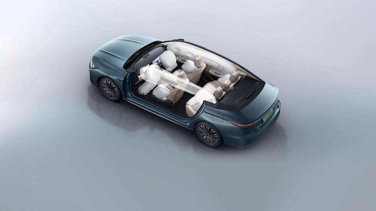 车内被动安全配置同样堪称“豪华”。全系标配10安全气囊,包括同级罕见的膝部气囊与第二排侧气囊,近2米长的侧气帘可在碰撞后6秒内保持80%以上压力,为前后排乘客提供全方位缓冲保护。这种“不计成本”的安全投入,在中级混动轿车中实属罕见。