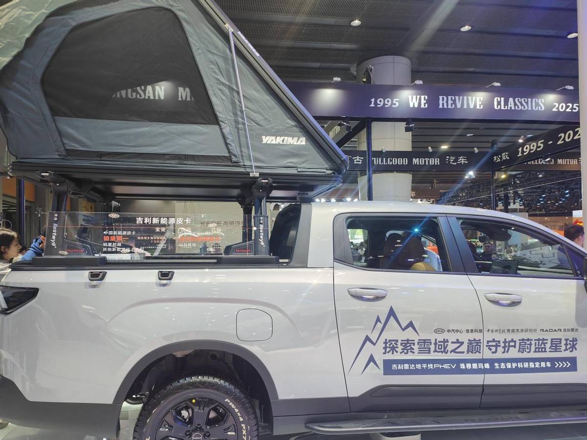 广州车展现场,吉利新能源皮卡以创新姿态成为全场焦点。其核心展品吉利雷达地平线PHEV车型,凭借搭载的雷神EM-P超级电混系统,在性能参数上实现突破性进展——综合续航里程超1000公里,峰值扭矩近1000牛·米,耐久承载能力超过1吨。这些硬核数据使其成为跨城物流、高原作业、极寒地区运输等场景的理想选择。此前在海拔4000米以上地区进行的实测中,该车型以1017.8公里的续航表现,验证了新能源技术在复杂环境下的可靠性。