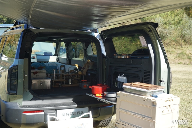 空间设计凸显露营场景思维:497L后备厢与160L前备箱构成双重储物空间,220V外放电功能支持电磁炉、咖啡机等电器同时运作。铝合金尾门桌板与嵌入式电磁炉组成的“山野厨房”,配合6.6kW大功率放电,构建起完整的户外生活解决方案。这种将车辆功能与露营需求深度绑定的设计,正在重新定义硬派SUV的使用场景边界。