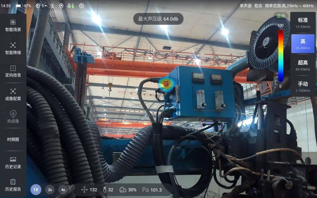 AI声学成像仪则专注于气体泄漏检测领域。在汽车制造车间,气动设备软管的气体泄漏问题长期困扰生产环节,而该设备通过声学成像技术,能够快速定位泄漏点并量化泄漏程度,为生产安全与效率提供保障。例如,在某汽车制造车间的实际应用中,AI声学成像仪成功识别出软管泄漏点,避免了潜在的生产事故。