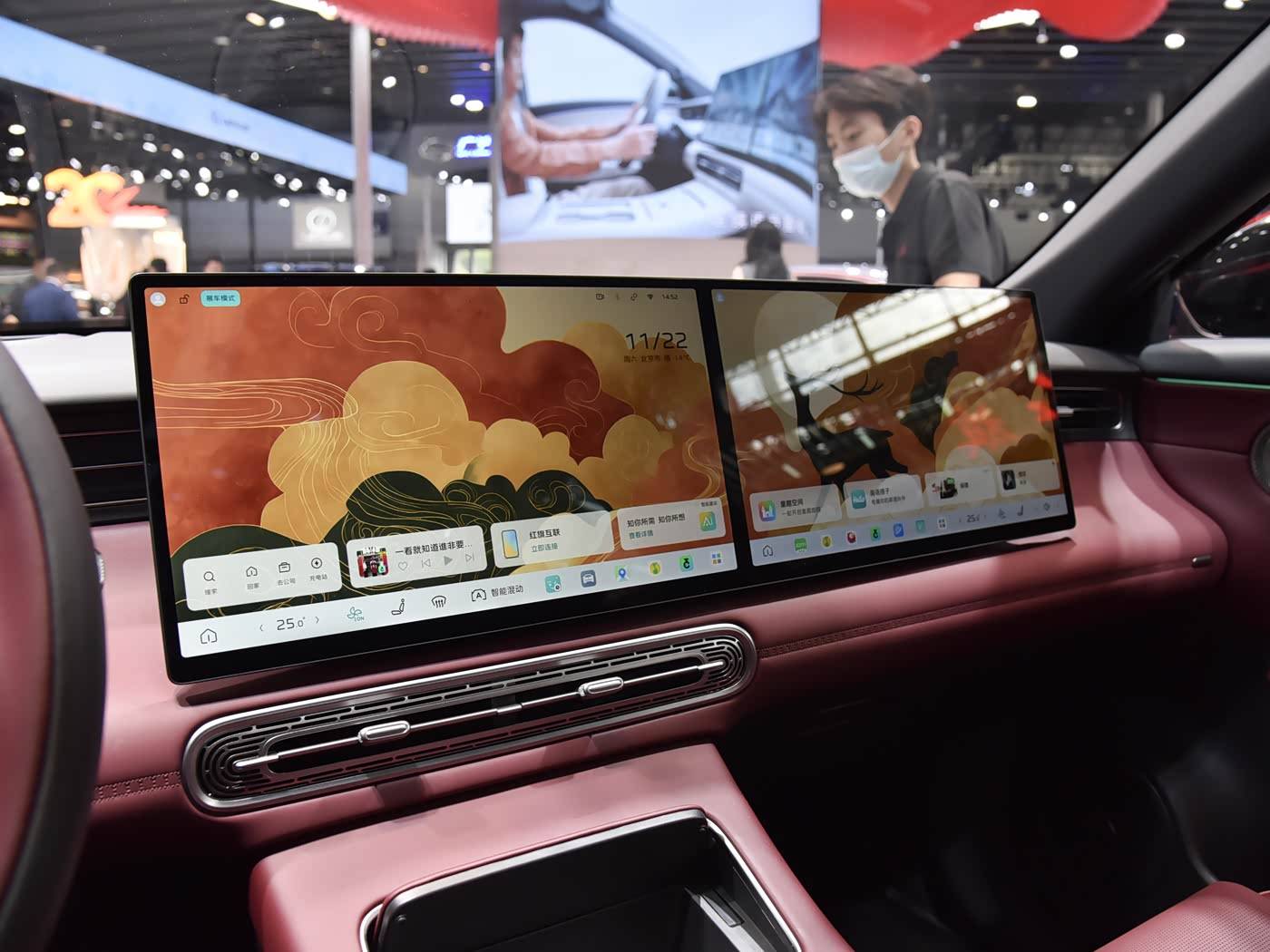 内饰方面,红旗HS6 PHEV同样不乏亮点。车内配备了内嵌式小尺寸矩形全液晶仪表盘,搭配双色三辐式多功能方向盘,既实用又美观。中控台区域,多媒体屏与副驾屏组成的双联屏设计尤为引人注目,屏幕尺寸和分辨率均达到了15.6英寸2.5K级别,且内置了高通骁龙8295P芯片,确保了流畅的操作体验。在辅助驾驶方面,红旗HS6 PHEV搭载了以视觉为主的司南智驾系统,集成了高速导航辅助、主动通过ETC闸口、拨杆变道、记忆行车以及遥控和记忆泊车等多项功能,为驾驶者提供了更加便捷和安全的出行体验。