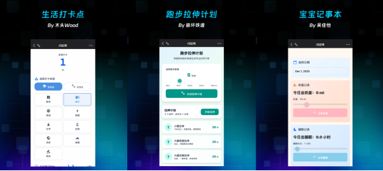 (图说:灵光用户创建的闪应用—生活打卡器、跑步拉伸计划、宝宝记事本)