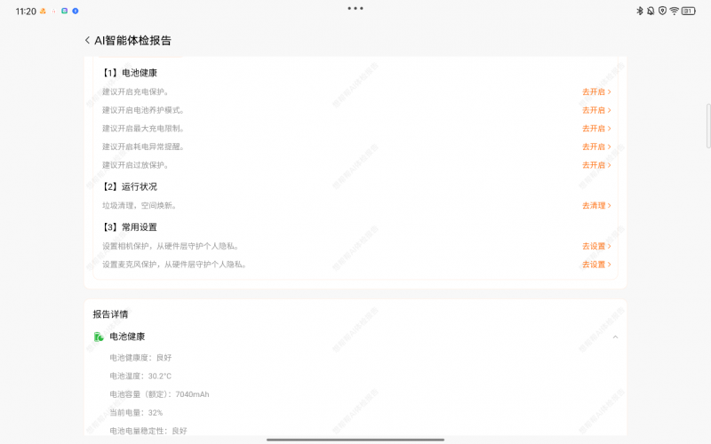 → 打开联想想帮帮AI服务智能体,使用“AI智检”功能,一键检测电池状态与健康度,还能提供专属优化建议。