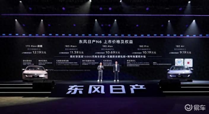 近日,东风日产正式推出全新插混轿车N6,以“为家人出行护航”为核心卖点,主打“大电池超舒适中高级家轿”定位,试图在竞争激烈的插混市场抢占一席之地。新车共推出多款配置,官方指导价区间为9.99万至12.99万元,限时优惠后起售价下探至9.19万元,进一步强化其性价比优势。