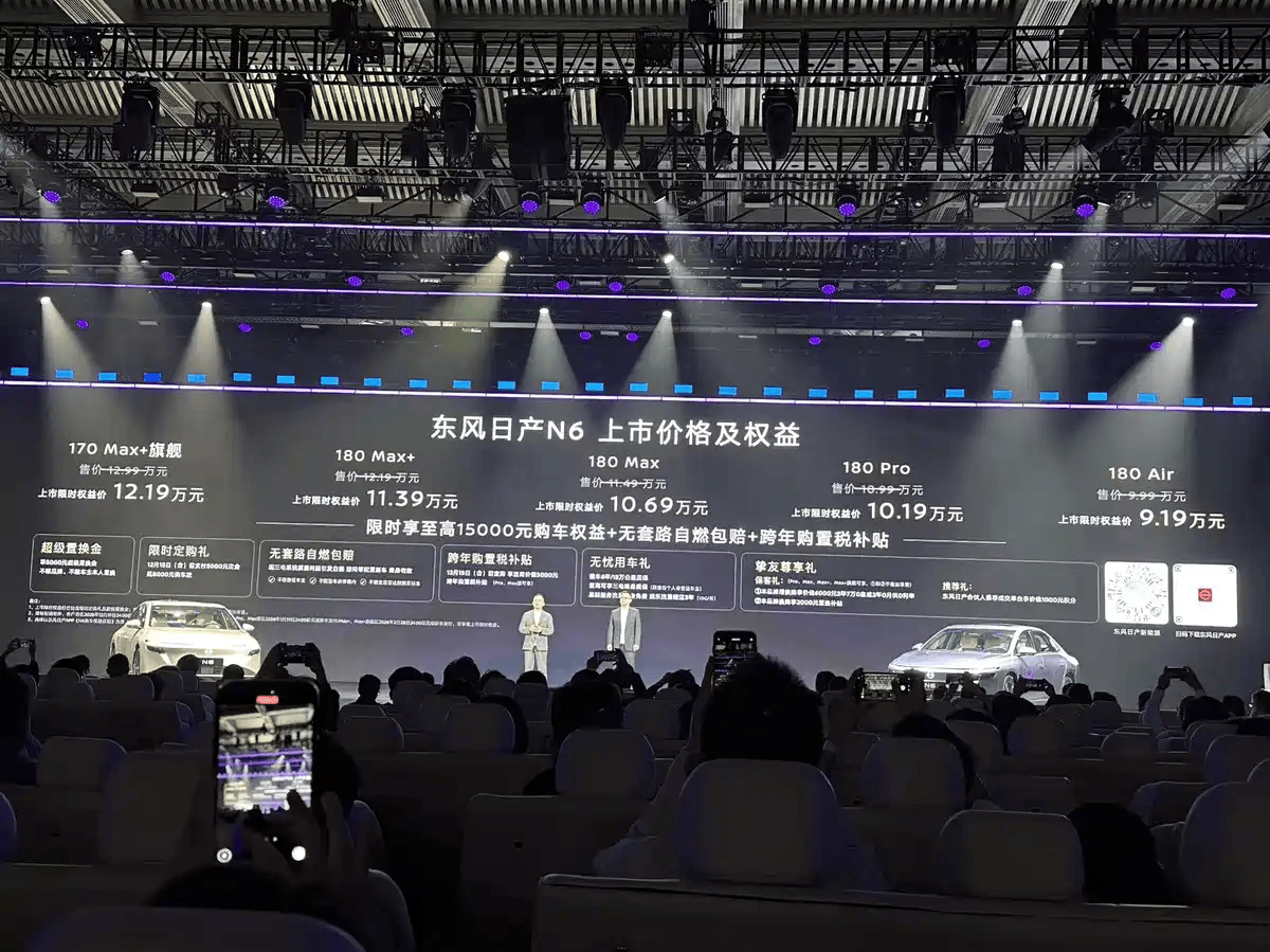 东风日产近日正式推出全新插混中型车——N6,新车共提供5款配置版本,官方指导价区间为9.99万至12.99万元,限时优惠后售价下探至9.19万元起。作为日产在华新能源战略的重要车型,N6凭借180公里CLTC纯电续航里程、智能化配置及家用化设计,向比亚迪秦L、吉利银河等竞品发起挑战。