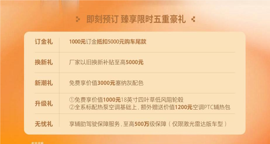 预售期间,欧拉5以“诚意加码”策略吸引消费者:原“1000元订金抵3000元购车尾款”权益升级为“1000元抵5000元”,且覆盖前期已下订用户,有效期持续至上市发布会当日。下订用户可享至高5000元厂家以旧换新补贴,以及塞纳灰车漆、18英寸四叶草低风阻轮毂、空调PTC辅热包等价值超5000元的配置礼包。算上订金礼后,激光雷达版本实际入手价仅需12.88万元起,并附带至高500万级辅助驾驶保障服务,这一组合拳在同价位车型中颇具杀伤力。