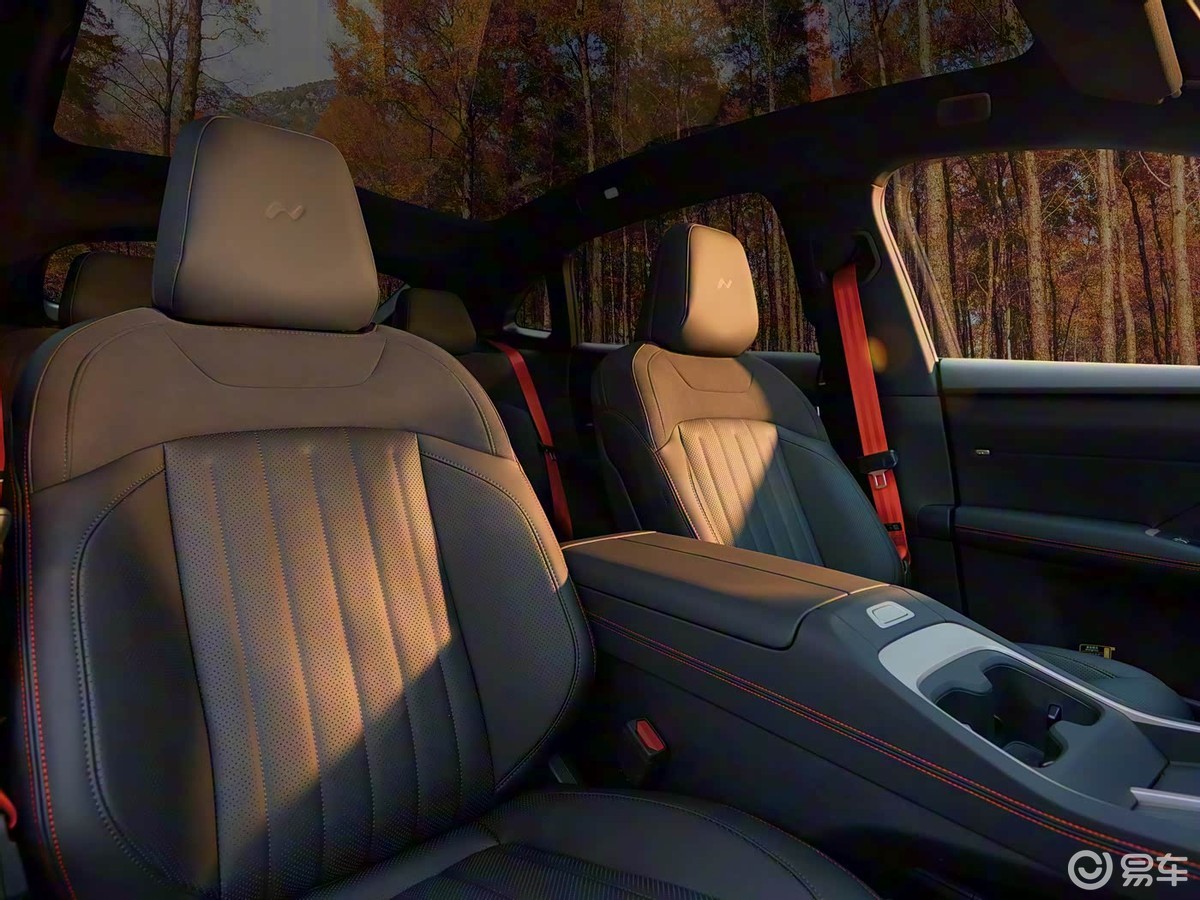 内饰方面,乐道L60黑骑士版同样延续了黑化主题,车内以大面积纯黑配色为主,营造出一种沉稳而神秘的氛围。细节处则以双层红色缝线进行点缀,不仅提升了内饰的精致感,也凸显了车辆的运动气息。红色安全带的加入更是为整车内饰增添了一抹亮色,让人眼前一亮。