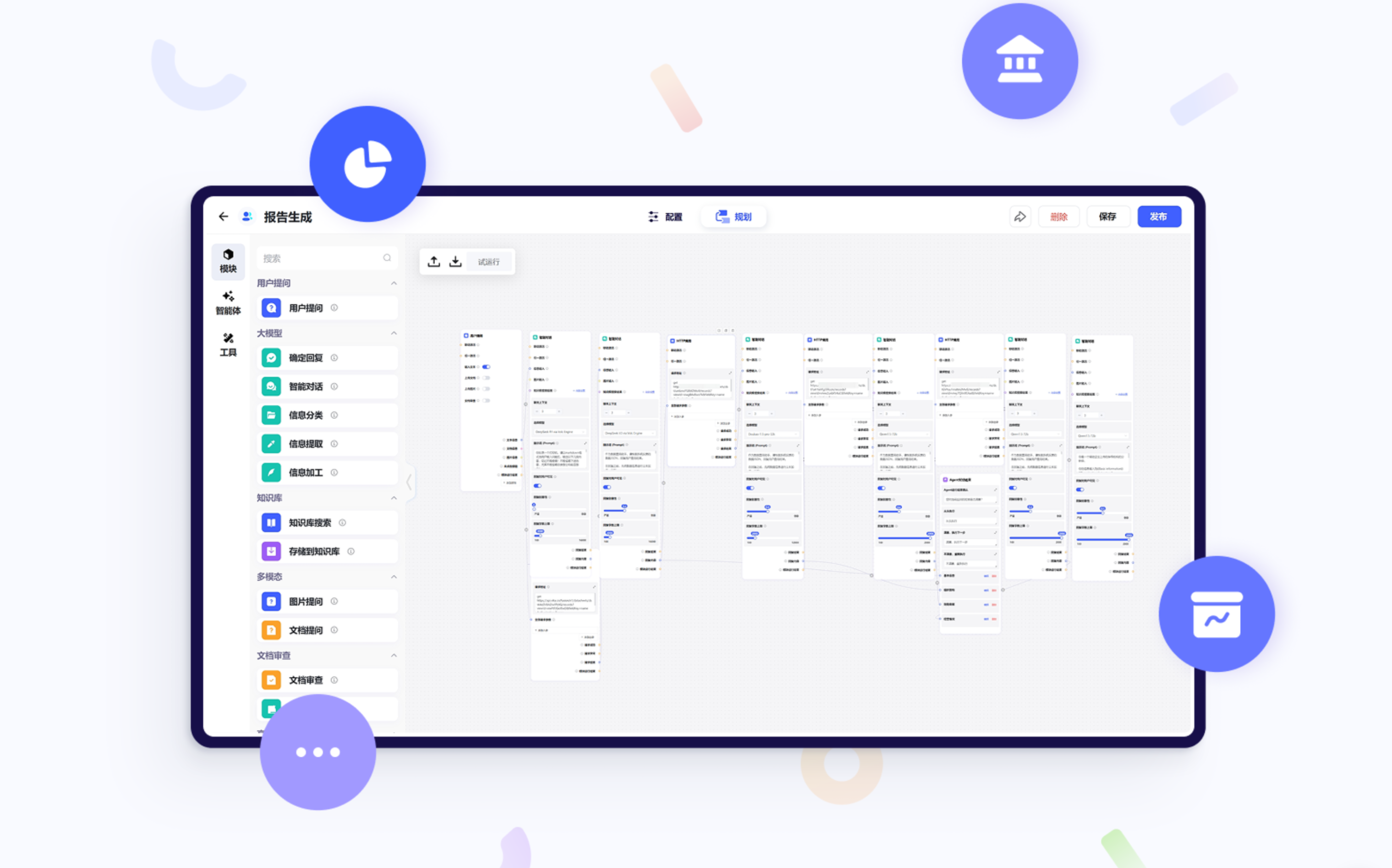 配合全链路可观测性设计与基于用户反馈的强化学习后训练机制,“灵搭”构建起“感知-决策-行动-迭代”的完整闭环,业务人员可直观追踪执行过程,还能通过简单反馈推动智能体持续优化,多项核心技术指标保持行业SOTA水平。未来式智能坚持以工程化思维打造贴合业务人员使用习惯的产品,“灵搭”从诞生之初就将系统集成、流程控制、知识治理和安全合规封装为可视化模块,业务人员通过拖拽、配置即可完成智能体搭建,真正实现“低门槛上手、高效率应用”。