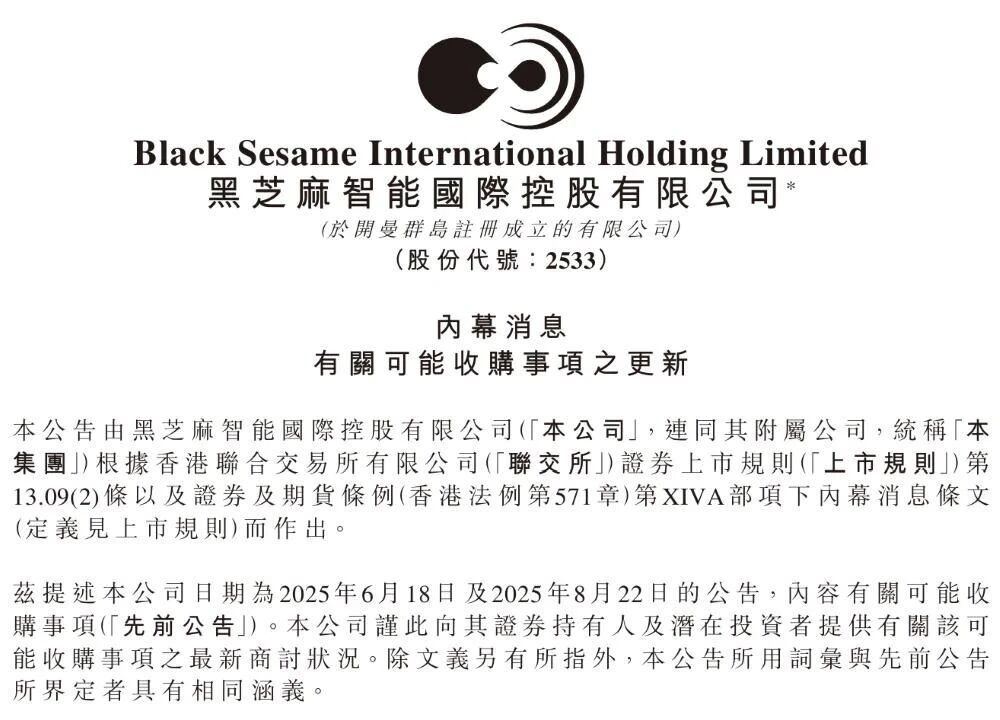 港股上市的国产智驾芯片企业黑芝麻智能近日宣布重大战略动作,拟以股权收购及增资形式并购珠海亿智电子科技有限公司,交易总金额预计在4亿至5.5亿元人民币区间。根据公告披露,若收购顺利完成,黑芝麻智能将获得目标公司多数股权,亿智电子将成为其非全资附属企业,财务数据将纳入合并报表范围。此次交易预计于2026年第一季度正式落地。