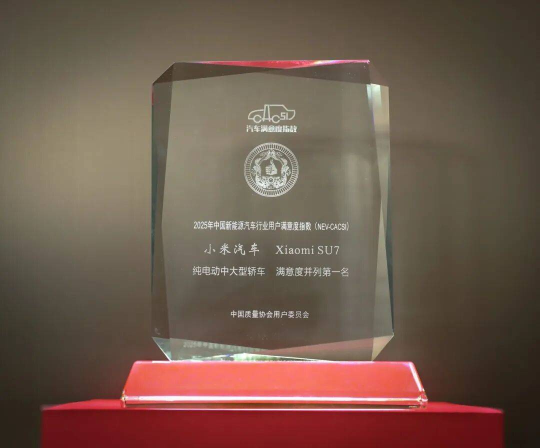 在中国质量协会最新公布的「2025年中国新能源汽车行业用户满意度指数」测评结果中,小米SU7凭借卓越表现脱颖而出,与另一品牌并列斩获纯电动中大型轿车类别用户满意度冠军。这已是该车型连续第二年登顶权威测评榜单,去年曾以“市场关注新车(轿车类别)”身份摘得同项殊荣。