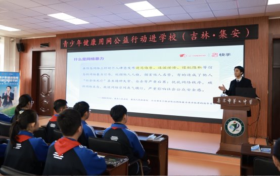 这场由共青团中央宣传部指导,共青团吉林省委主办,共青团集安市委承办,快手作为战略合作单位共同举办的“青少年健康用网公益行动进学校”活动,旨在通过网络安全教育,提升青少年网络素养,增强防范网络暴力的意识与能力。近200名初一至初三的学生参加了这堂思政课。
