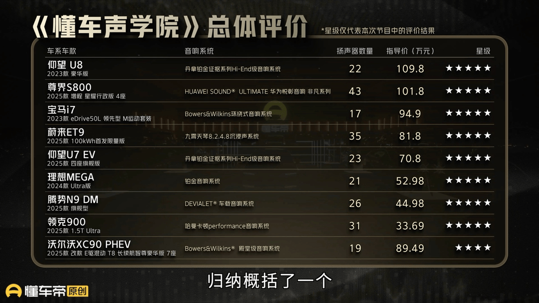测试体系采用“客观数据+主观体验”双轨制,所有车辆均为懂车帝从全国4S店随机采购或租赁的量产版本,确保测试条件与消费者实际用车场景完全一致。测试团队通过专业设备采集振动噪声数据,同时组建由十余位音乐人、声学工程师构成的盲听评审团,从音色还原度、空间感等维度进行主观评分,最终形成1-5星的综合评级。