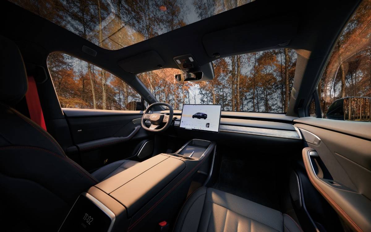 在车身尺寸方面,乐道L60黑骑士版长宽高分别为4828毫米、1930毫米和1616毫米,轴距达到2950毫米,为车内空间提供了充足保障。内饰设计以黑色为主色调,雅黑皮革座椅搭配木纹饰板,营造出低调奢华的氛围。细节处点缀的橙色缝线和橙色安全带为整体内饰增添了一抹亮色,后排右侧折叠桌板的标配则提升了实用性。车机系统也进行了专属显示模型的更新,进一步优化了用户体验。