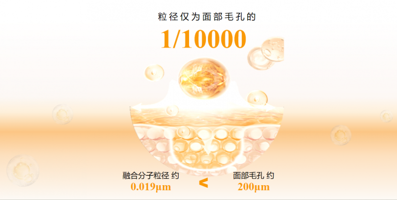 ②油溶胶原分子具备优异的高弹特性,并且其分子粒径仅为皮肤毛孔的1/10000,易于通过细胞间隙与脂质基质,实现高效速透吸收;