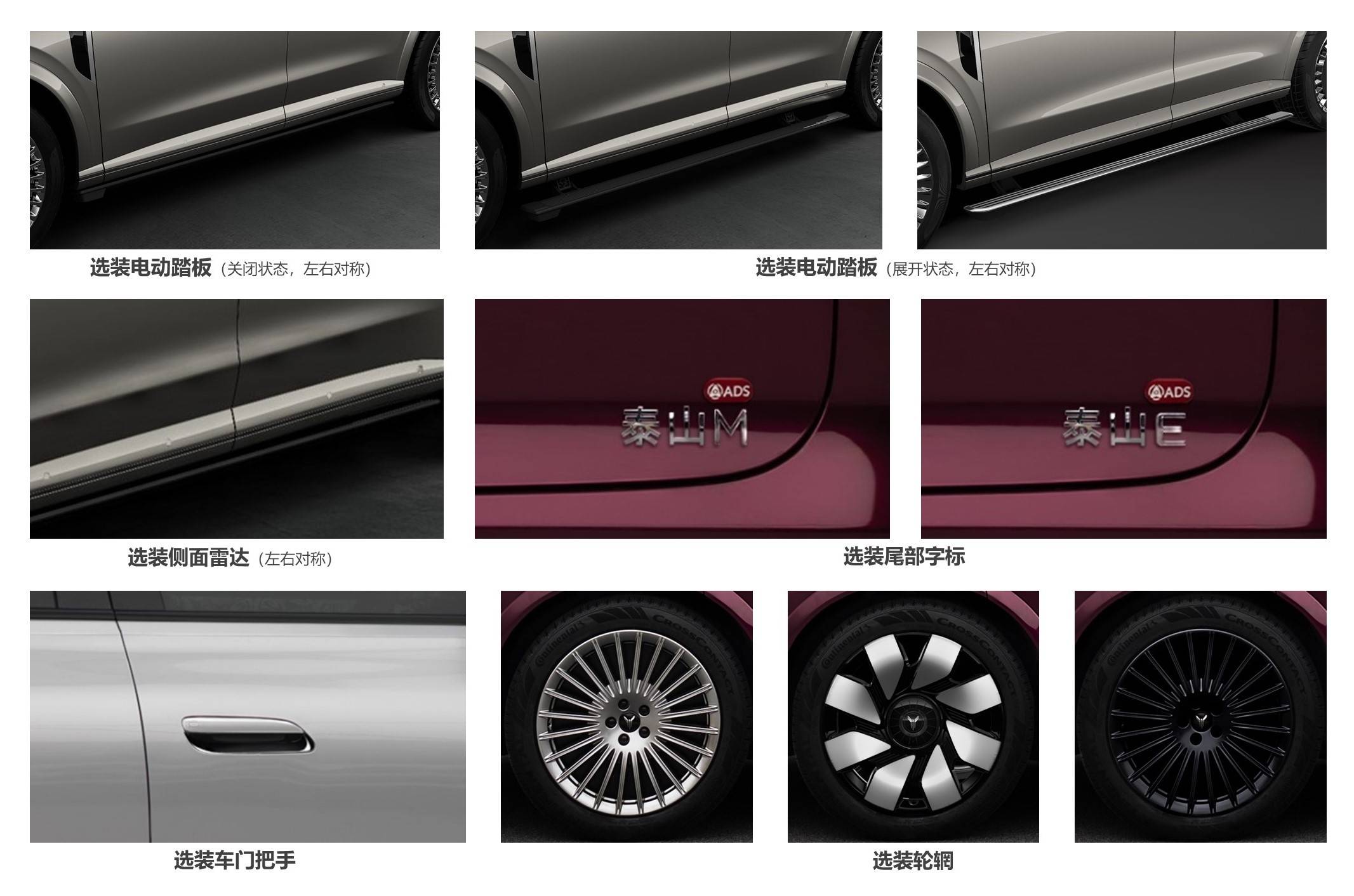 尺寸方面,新车轴距较现款缩短30mm,转而采用5座布局,这种调整与理想L9(6座)与L8(5座/6座)的定位差异形成呼应。车身侧面保留半隐藏式门把手、电动侧踏板等实用配置,尾部延续贯穿式尾灯与隐藏式排气设计,整体轮廓保持家族化特征。值得注意的是,申报信息显示岚图同时注册了“泰山M”“泰山E”两个尾标,最终命名方案需待官方确认。