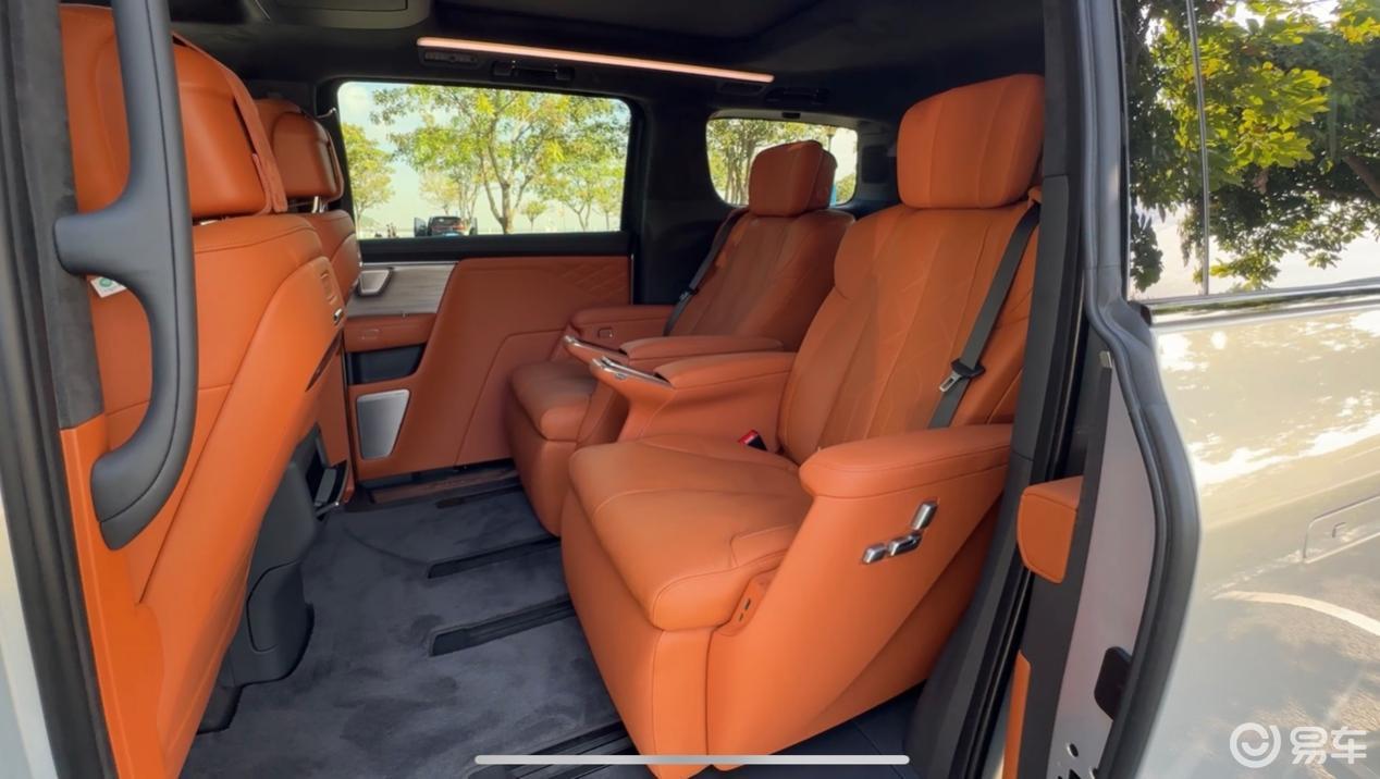 车内空间以“移动头等舱”为标准打造,三排座椅均采用悬浮层技术——在Nappa真皮下方嵌入触感优化填充层,配合超纤麂皮绒车顶与澳洲羊毛地毯,构建出越级豪华氛围。二排配备两张零重力座椅,支持多向电动调节与一键躺平功能,实测180cm身高乘客在二排保留两拳腿部空间时,三排仍能获得同等舒适度,真正实现“全舱平等”体验。车顶悬浮式21英寸4K娱乐屏支持三屏联动,并获得莱茵护眼认证,配合二三排分段式1.1米护眼灯带(南德认证),为后排乘客提供全方位健康关怀。