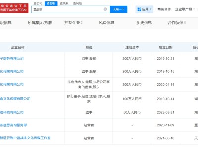 该公司成立于2017年8月,法定代表人、董事长为秦雯老公王光利,注册资本1500万人民币,经营范围包括策划文化艺术交流活动、影视策划、广播电视节目制作、舞台设计等,由杨若琳、伏柳、史青等共同持股。值得一提的是,今年9月和10月,王光利名下海南草木深科技合伙企业(有限合伙)、四川紫光创域科技有限公司已注销。