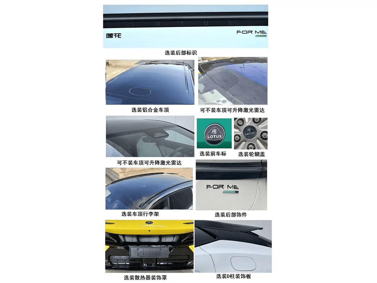 从申报信息来看,莲花FOR ME在配置方面十分丰富。车辆提供升降激光雷达、行李架、轮圈、制动卡钳、电动拖车钩等多种选装配置,满足不同用户的个性化需求。该车还将配备双腔双阀空悬以及主动稳定杆,进一步提升车辆的操控性能和乘坐舒适性,为驾驶者带来更加卓越的驾驶体验。