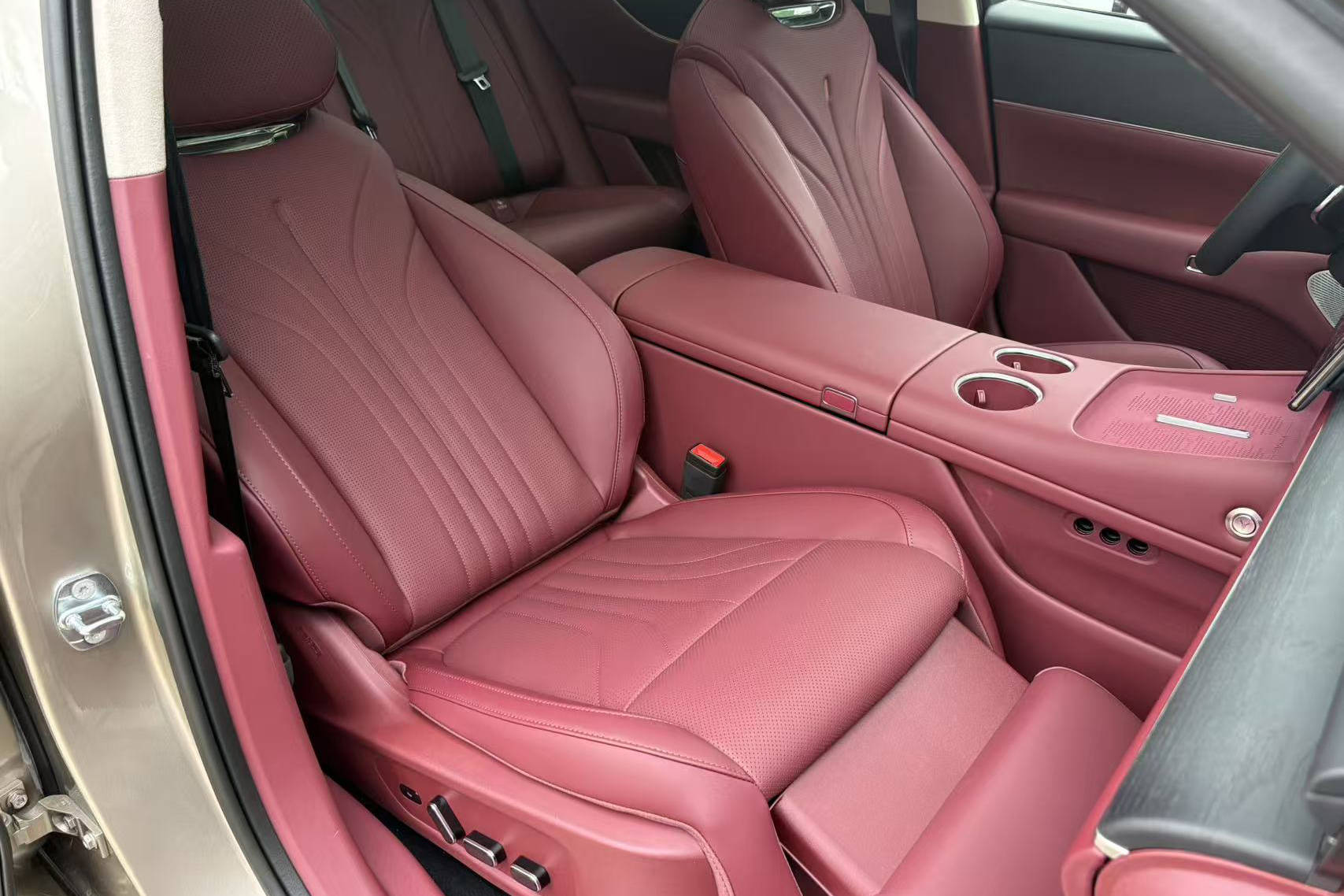 进入车内,环抱式布局营造出温馨舒适的驾乘环境。真木装饰与大面积皮质材质包裹,凸显豪华质感。中控台中央搭载16.1英寸3K屏幕,内置鸿蒙智能座舱5.1系统,支持AI语音大模型与跨端交互,操作便捷流畅。车辆还配备10.25英寸液晶仪表、AR-HUD抬头显示、50W手机无线充电面板以及四温区空调,配置丰富且实用。后排配备8英寸液晶屏与车载冰箱,为后排乘客提供更多便利与享受。