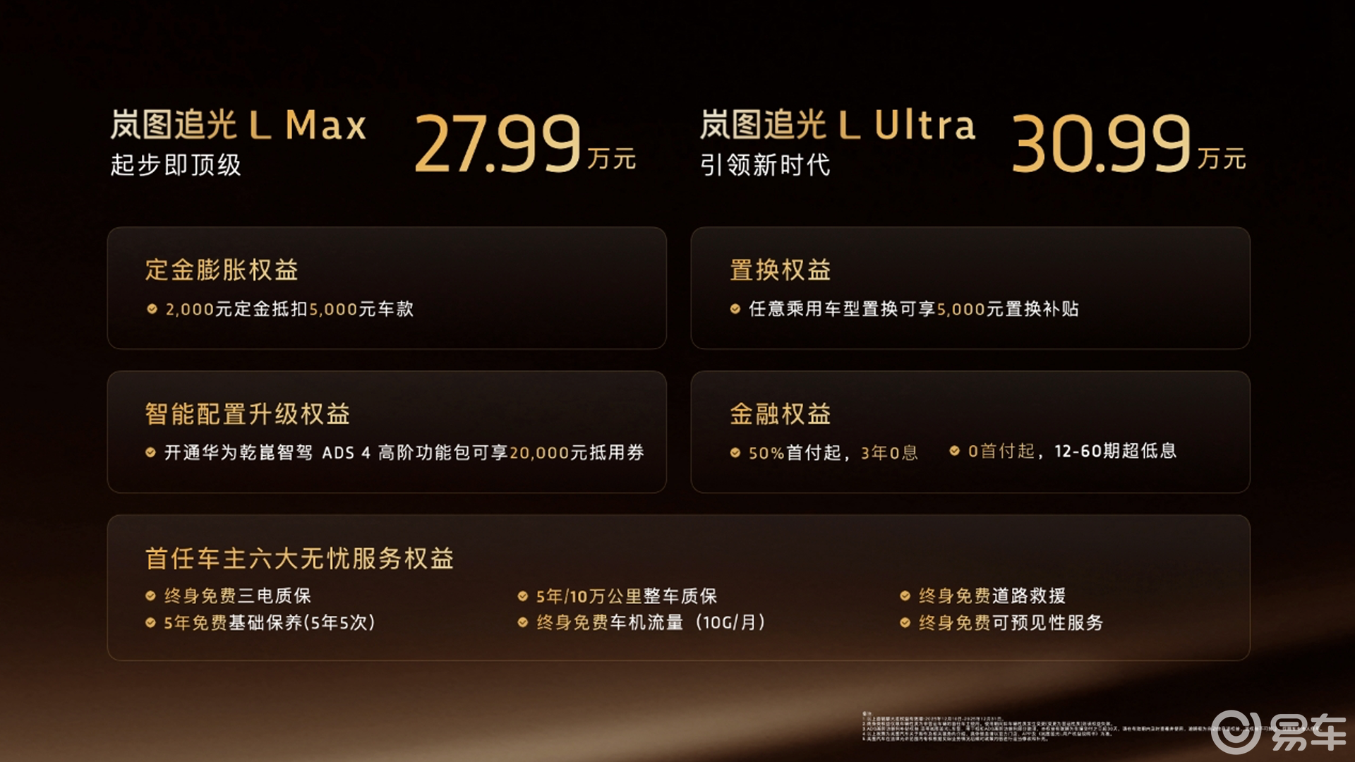 在智能化与电动化浪潮席卷全球汽车产业的当下,中国汽车品牌正以破竹之势向高端市场发起冲击。12月10日,岚图汽车以“破晓”为主题,在北京发布全新旗舰轿车——追光L。这款承载多项行业首创技术的车型,以27.99万元(Max版)和30.99万元(Ultra版)的定价入市,并推出总价值5.2万元的首任车主权益包,涵盖终身免费三电质保、五年基础保养等服务,同时提供3年0息金融方案,以“技术普惠”姿态重新定义高端豪华轿车的价值标杆。