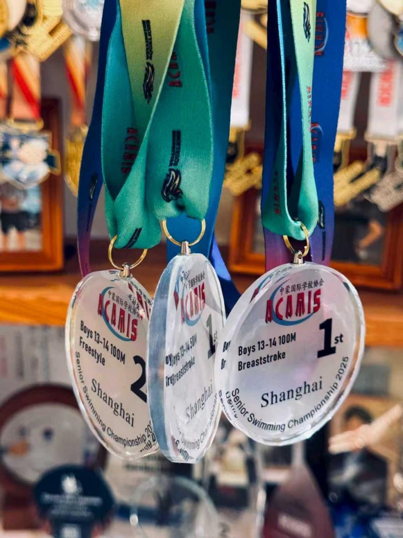 为期三天的 ACAMIS Senior Swimming Championship 5-7 December, 2025 Shanghai 中蒙国际学校协会,国际学校体育联合会游泳锦标赛)于2025年12月5日至7日在上海惠灵顿外籍子女学校圆满落幕。来自上海耀中外籍子女学校的选手阮童恩(Tony Ruan)表现惊艳,在男子蛙泳与自由泳项目中强势突围,最终斩获两枚金牌和一枚银牌,为学校赢得荣誉。