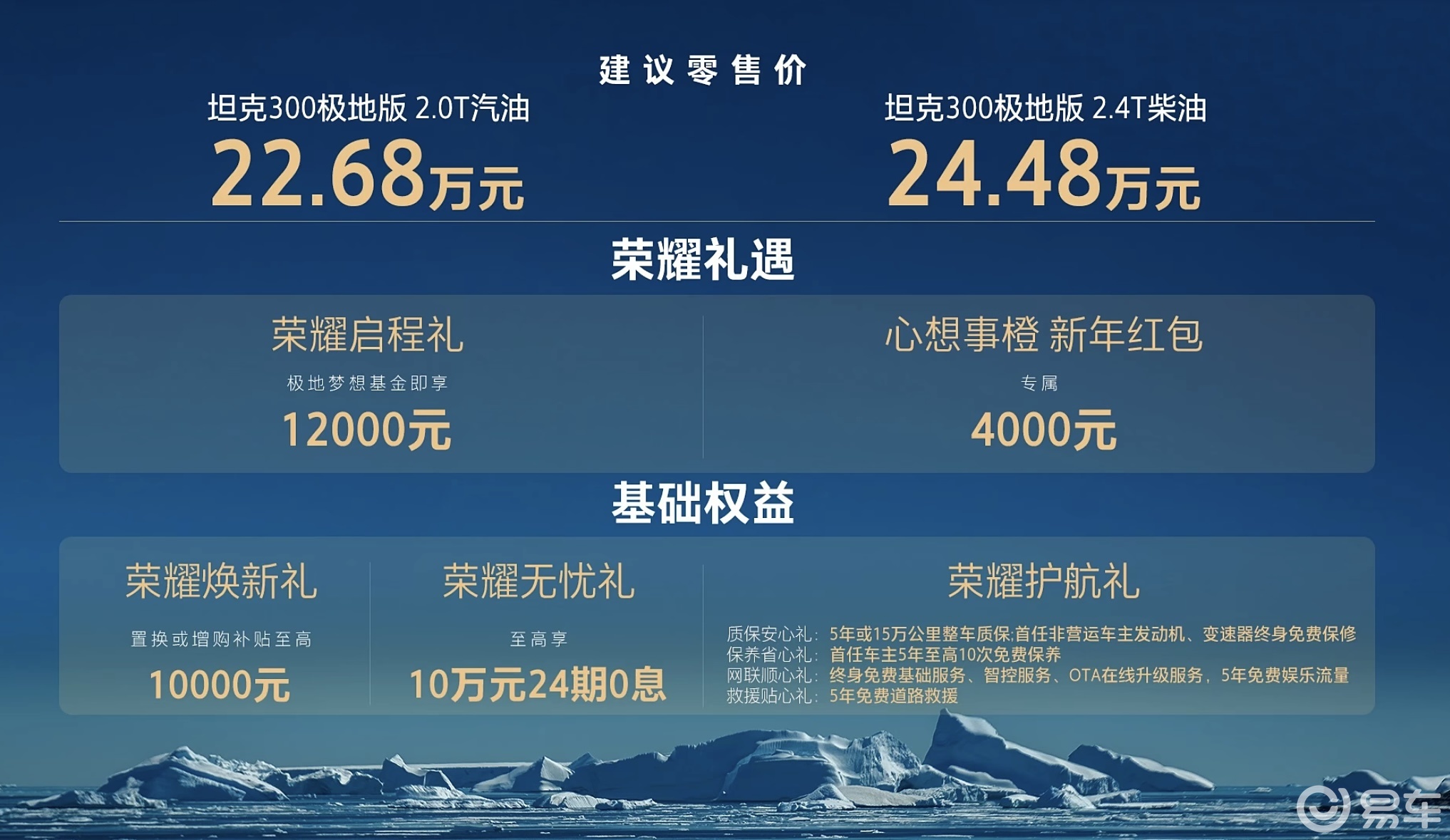 中国硬派越野市场迎来一款极具特殊意义的车型——坦克300极地版正式上市。这款专为极地探索场景打造的限量版车型,以22.68万元的起售价开启征途,全球仅发售300辆,凭借独特的设计理念与硬核性能配置,迅速成为越野爱好者关注的焦点。