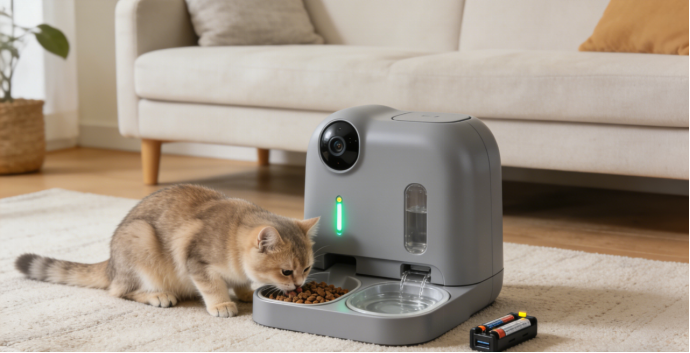 进食识别是宠物健康监控里最敏感的指标。猫咪“吃得少一点”可能代表肠胃不适,狗“吃得太快”可能会胀气,长期忽略就会累积问题。传统喂食器只能靠压力传感器,数据维度太单一,而且不够准确。