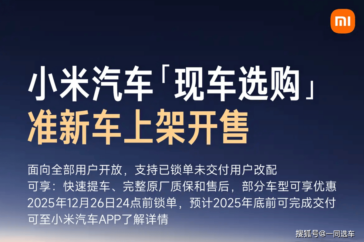 小米汽车近日推出“现车选购”服务,面向全体用户开放,已锁单但尚未交付的客户可申请改配,享受原厂完整质保。此次活动涵盖YU7 Max、SU7 Max、SU7 Ultra三大车型,价格根据配置差异有所浮动,其中YU7 Max优惠力度最大,立减22000元,SU7 Max和SU7 Ultra分别立减8000元和19000元。用户需在12月26日24点前完成锁单,预计2025年底前可提车。