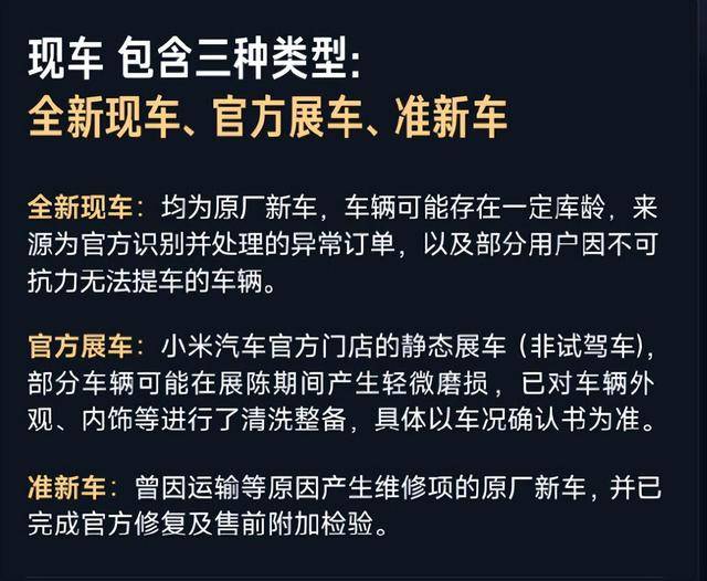 值得一提的是,此次现车选购服务面向所有用户开放,无论是否已锁单或未交付,均可参与选购。对于已锁单但尚未交付的用户,小米汽车还提供了改配服务,满足用户多样化的购车需求。